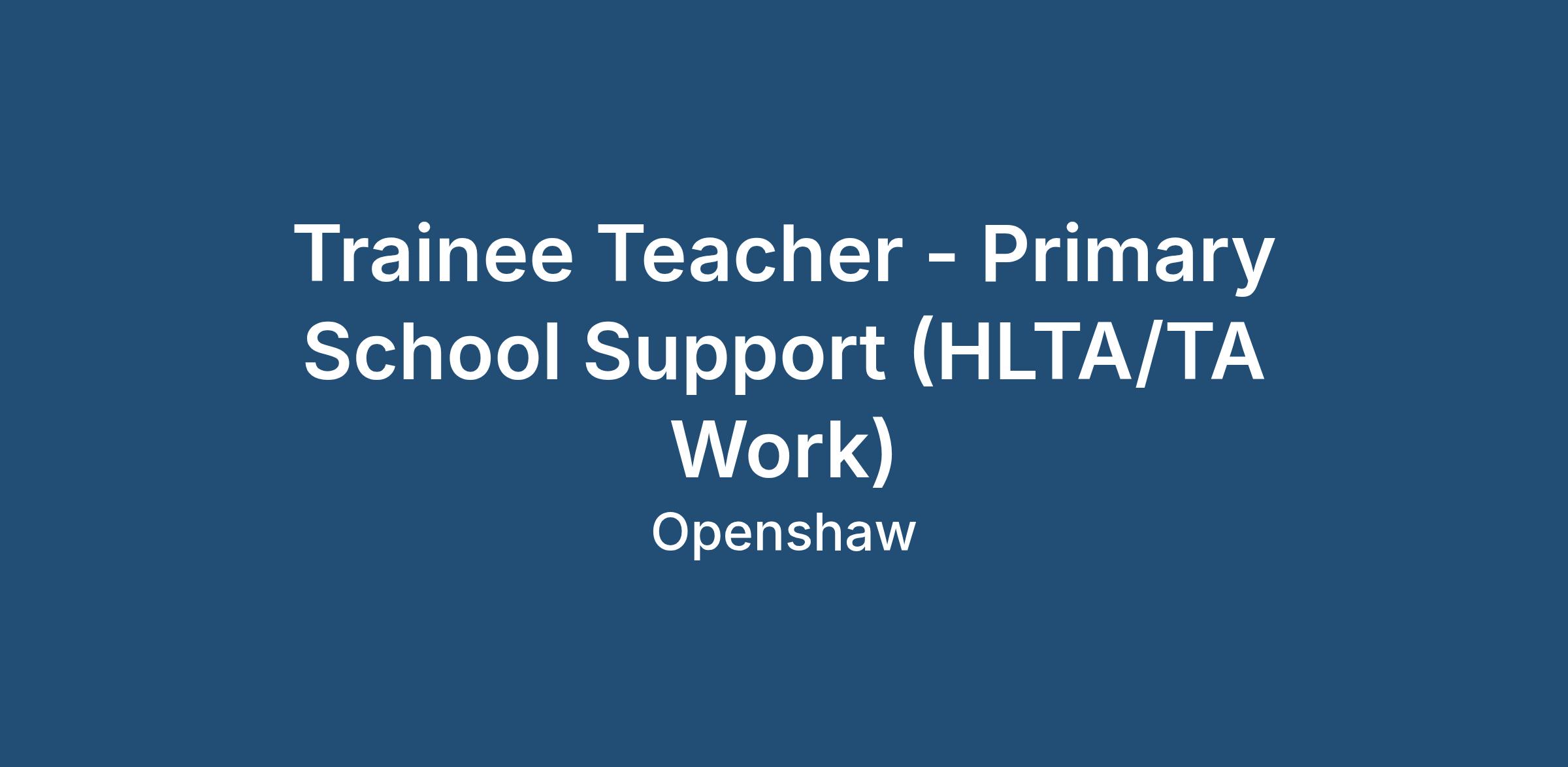 Trainee Teacher - Primary School Support (HLTA/TA Work)