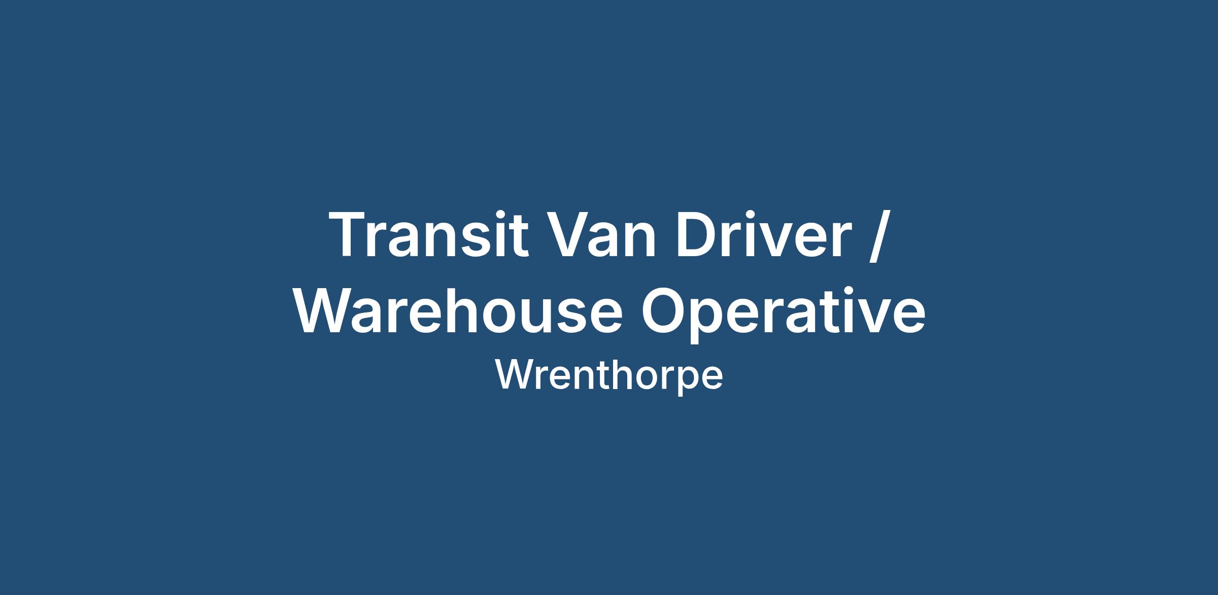 Baker Recruitment Group are pleased to be working alongside our client based in WF2. Due to continued business growth and expansion, we are looking to recruit a Transit Van Driver / Warehouse Operative