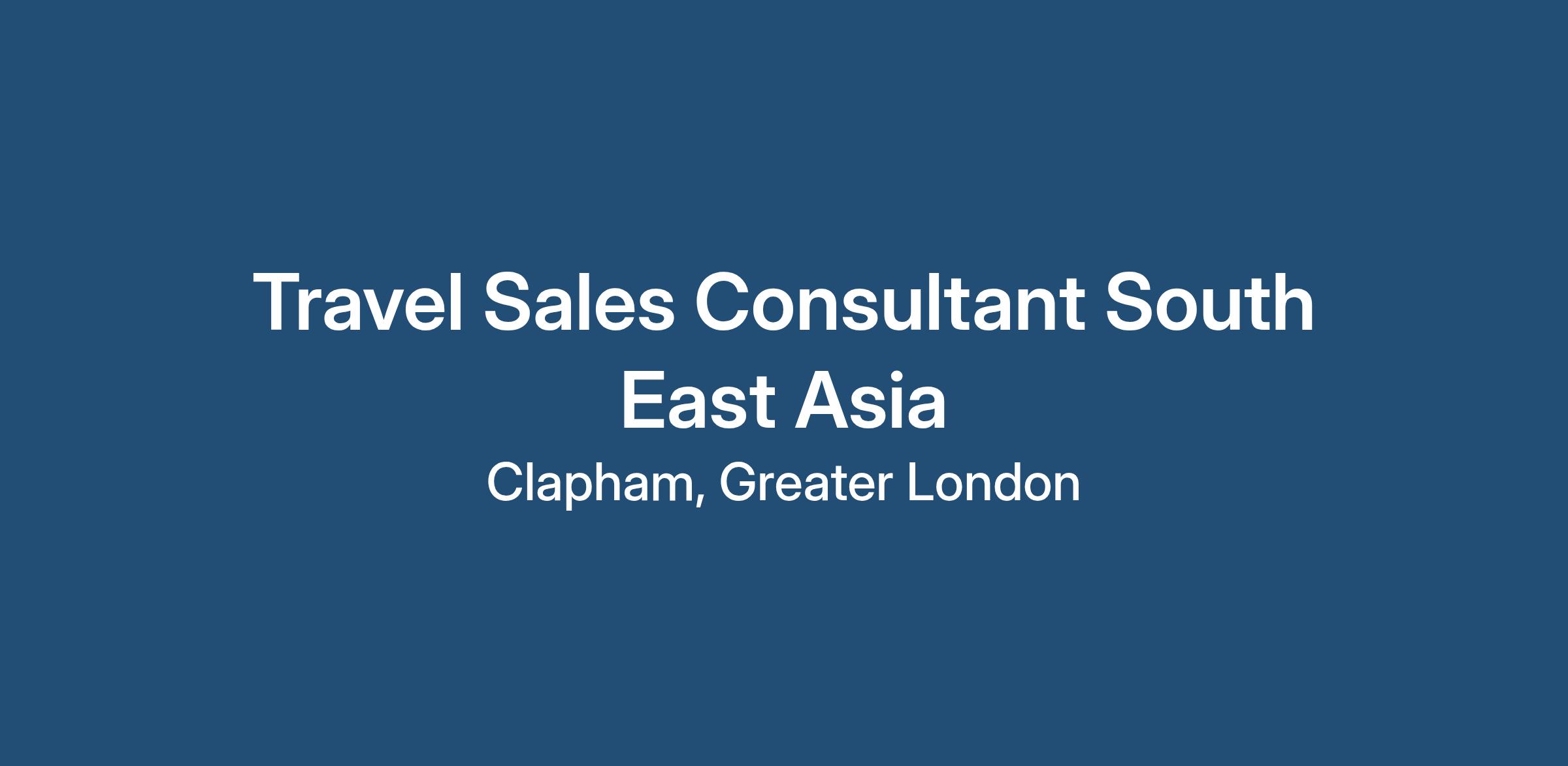 Candidates must have previous travel sales experience and required to have travelled extensively gaining first hand product knowledge of South East Asia as well as having a vested interest in the region, culture, people etc as well having an interest responsible travel.