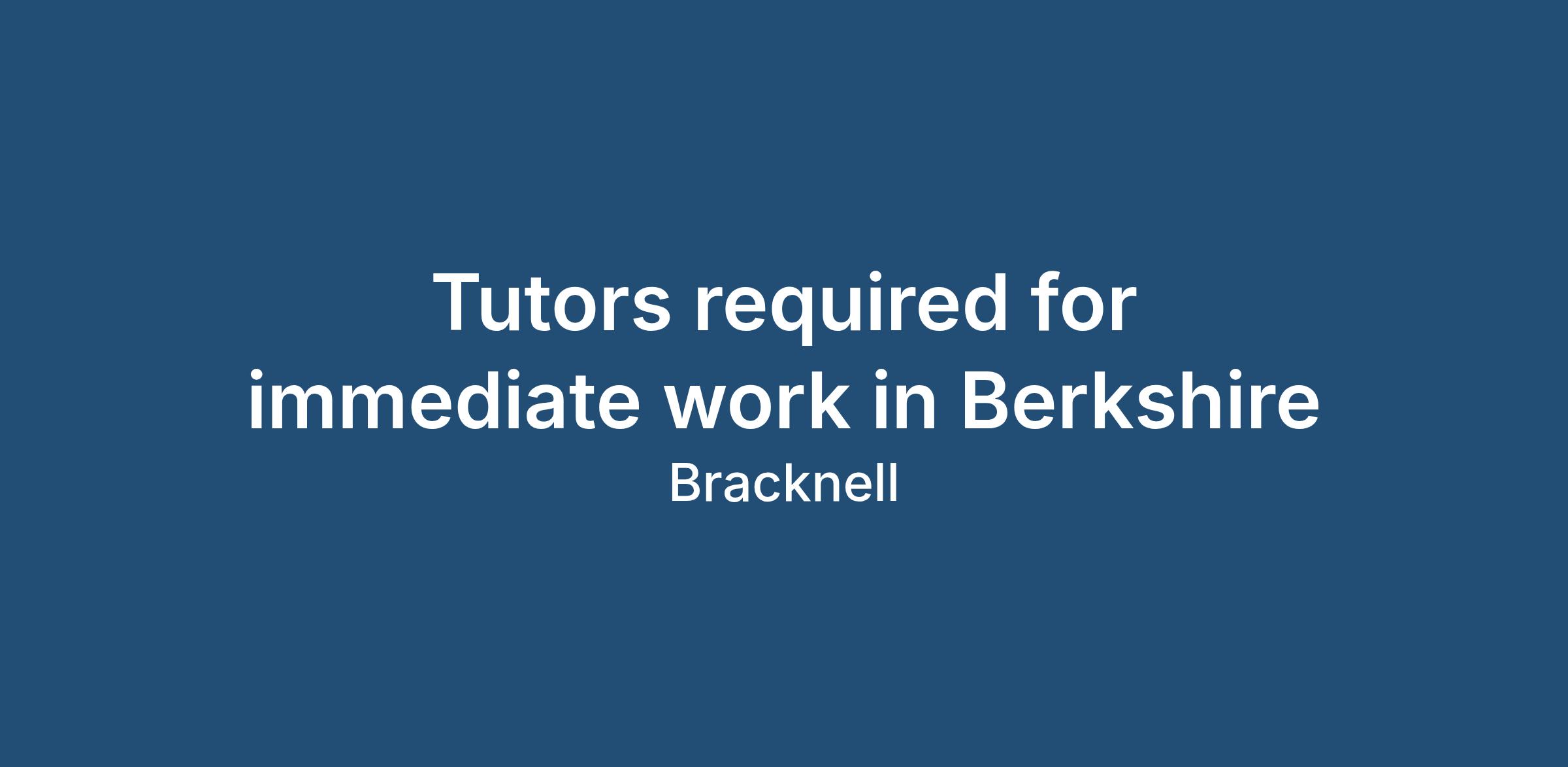 Tutors required for immediate work in Berkshire