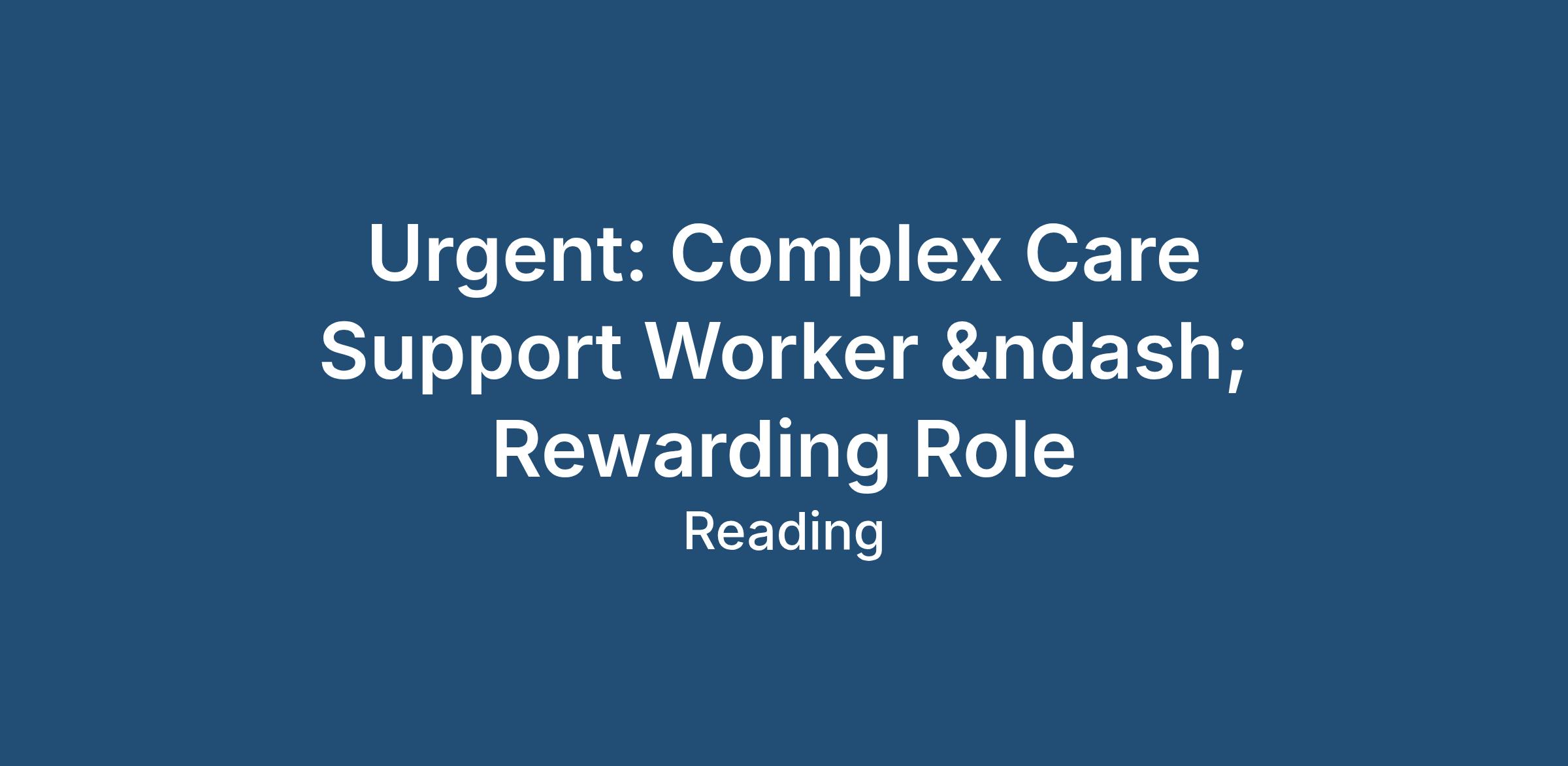 Urgent: Complex Care Support Worker – Rewarding Role