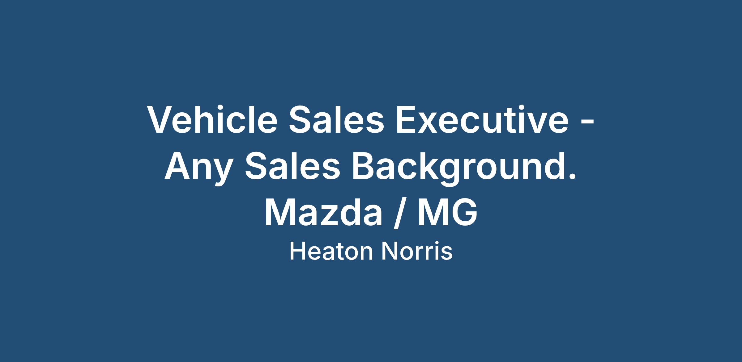 Ready for a career with Mazda / MG? Exciting new opportunity for a Vehicle Sales Executive to join our team at our newly refurbished state-of-the-art site in Stockport.