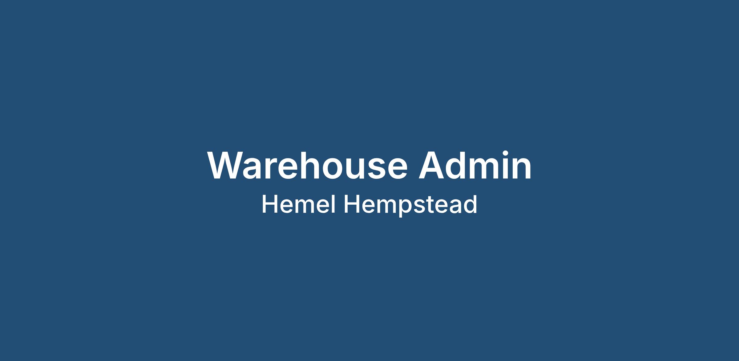 Interaction Recruitment are recruiting for a Warehouse Administrator to join their busy client in Hemel Hempstead on a 12 week temp basis with the potential for extended period or temp2perm. The successful candidate will have strong admin skills and will have stock control experience.