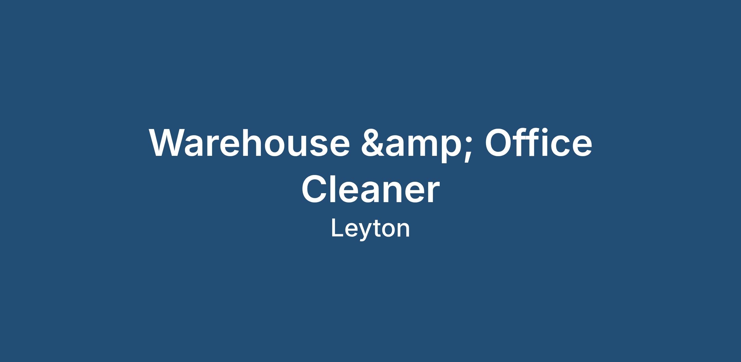 Our client based in Leyton is looking for a cleaner to join them on a temporary basis.