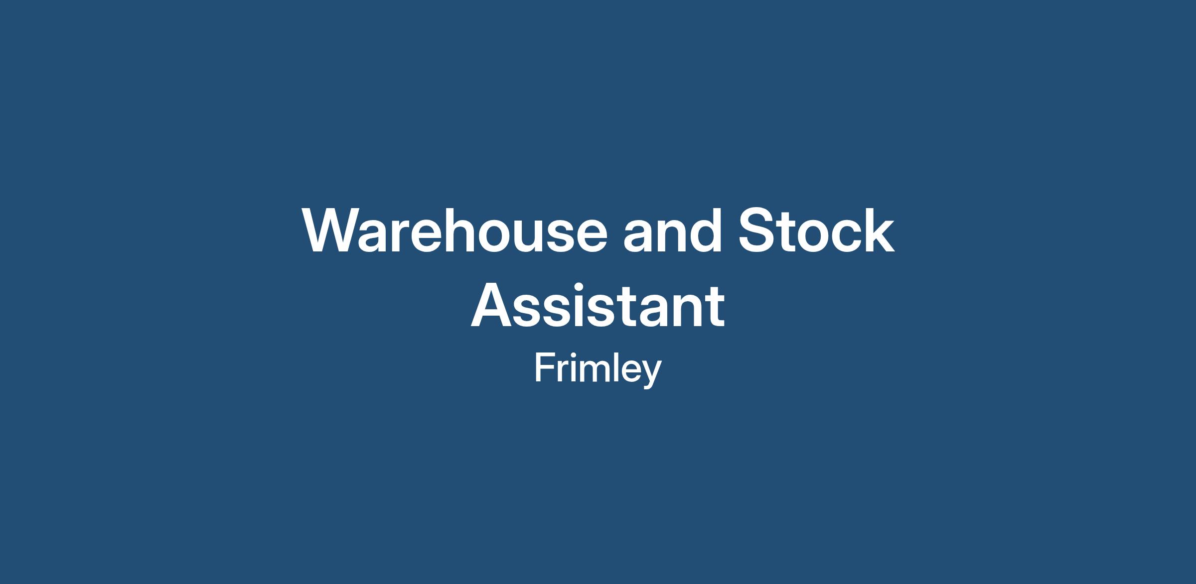Main duties of the Warehouse and Stock Assistant will include: