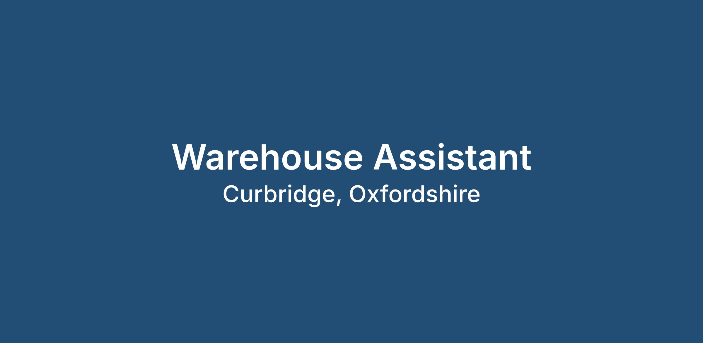 As the Warehouse Assistant, you will: