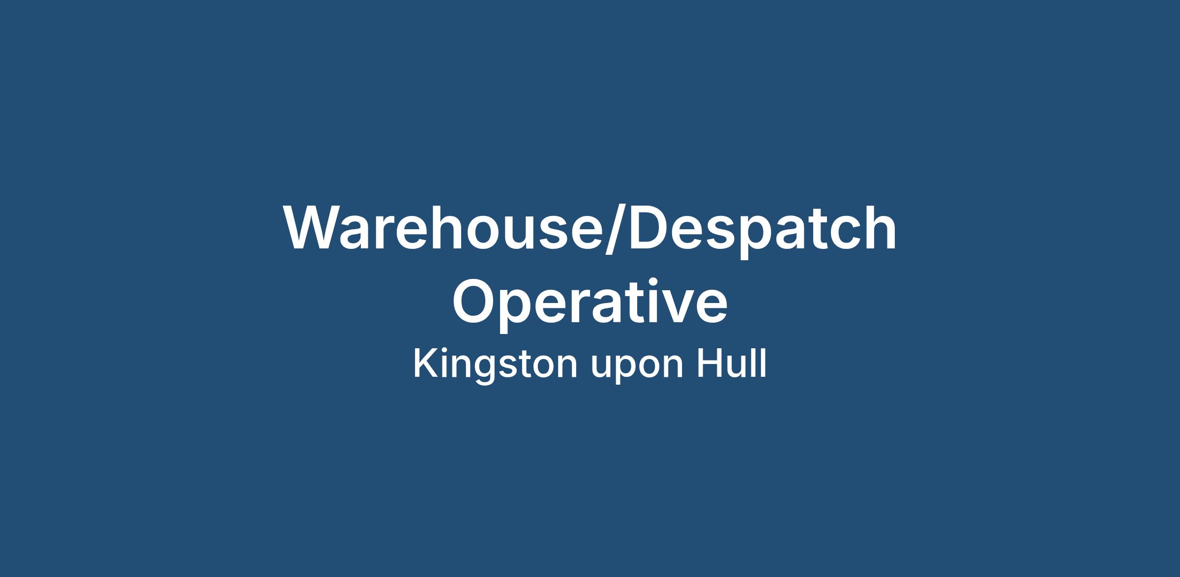 Brand new! On behalf of our client we have an immediate requirement for a Warehouse/Despatch Operative. Located in the east Hull area and working day shift from 10am to 6pm, Monday to Friday, this is an excellent opportunity offering an immediate start and intended to permanent!