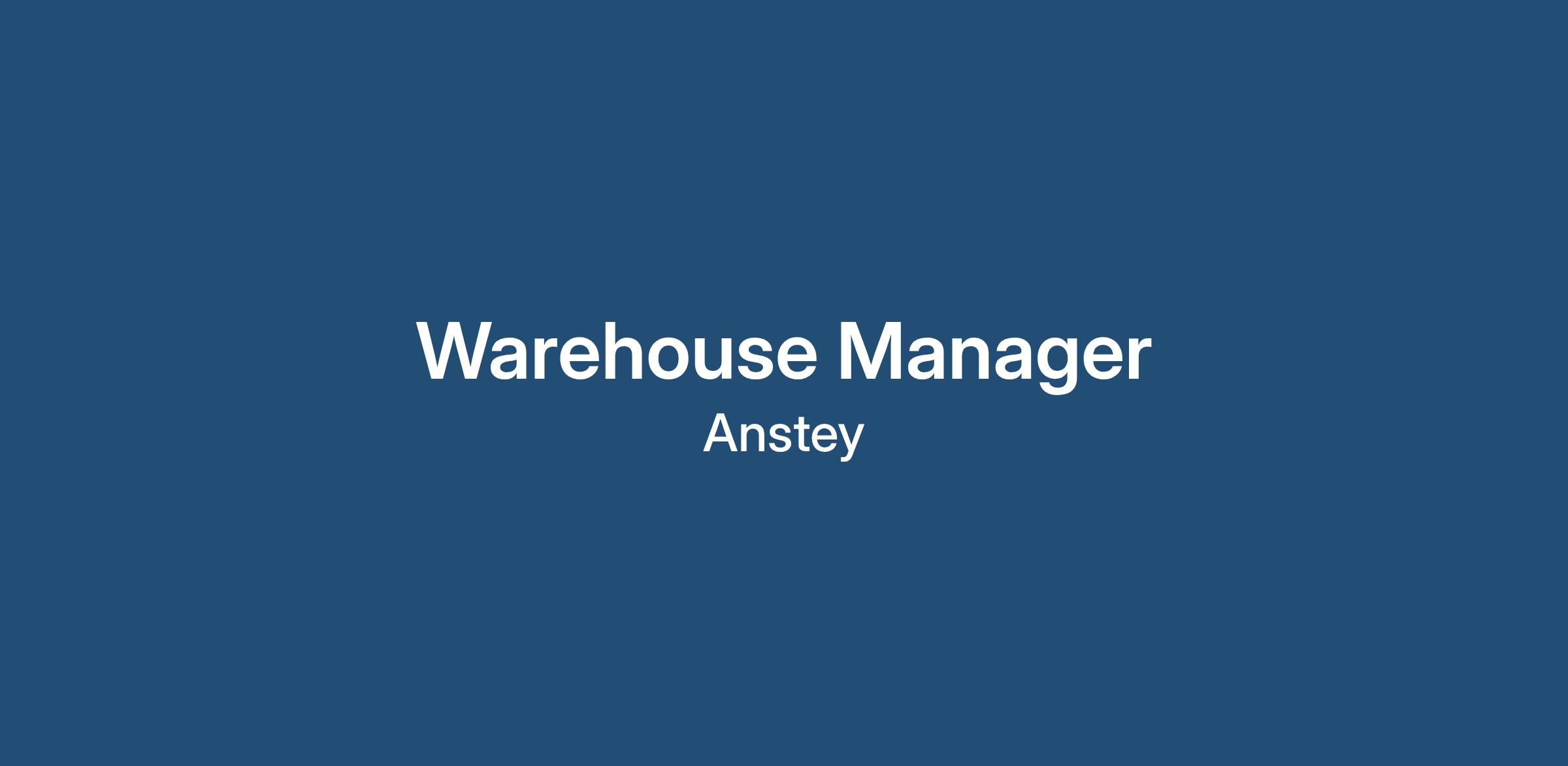 If you believe you have the right skills and experience for this Warehouse Manager opportunity, please click 'Apply Now' with a copy of your updated CV.