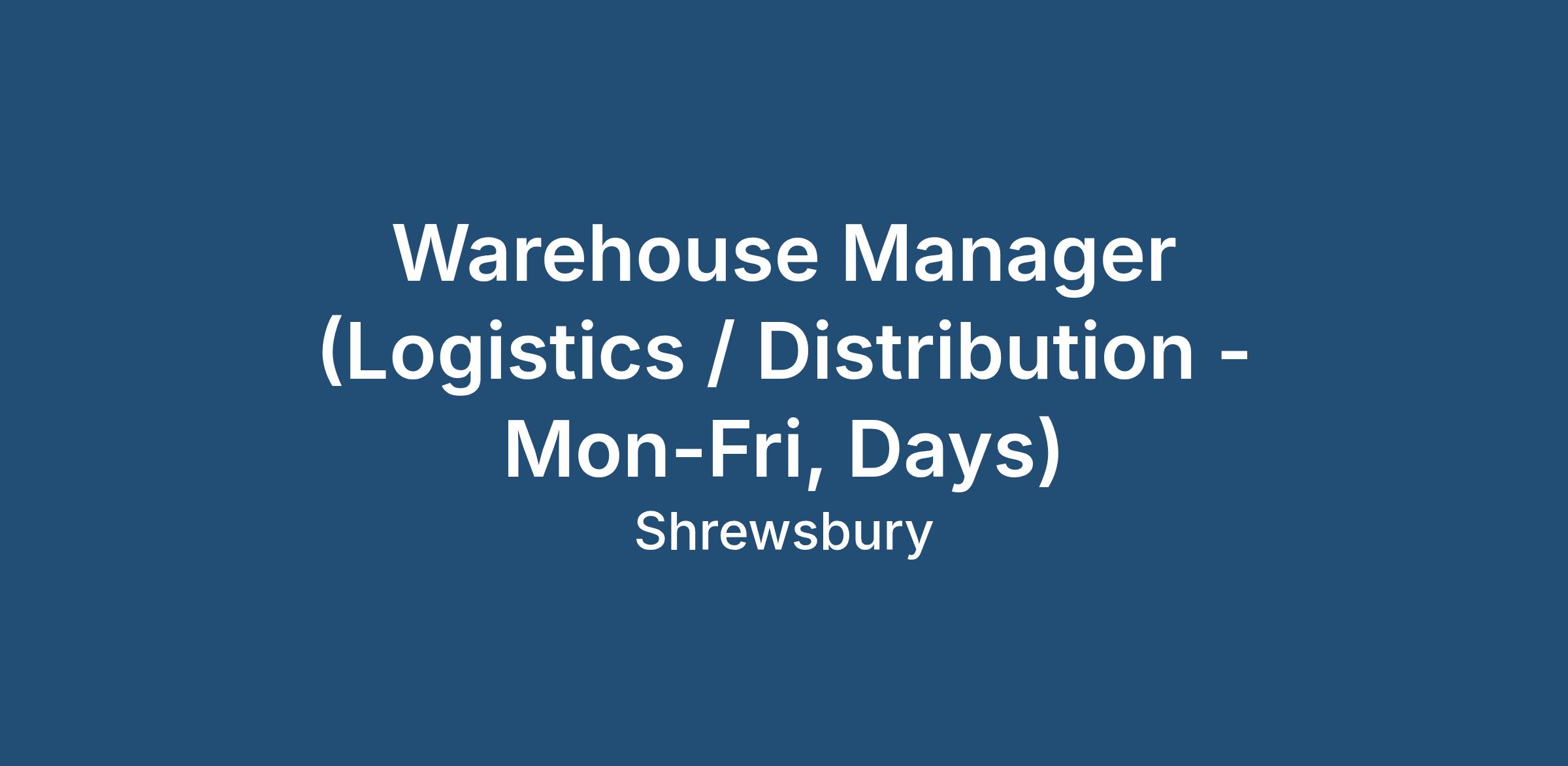 Warehouse Manager (Logistics / Distribution - Mon-Fri, Days)