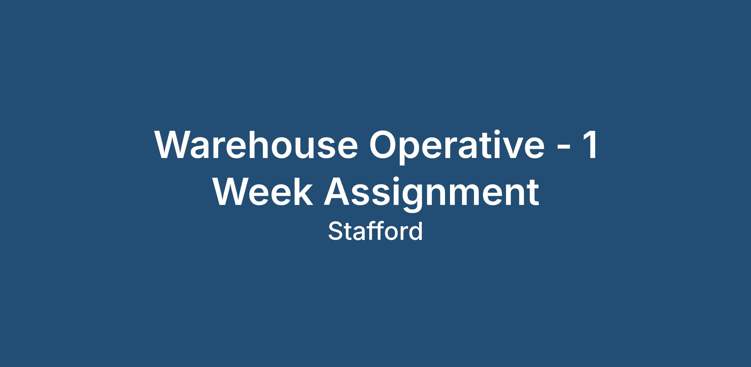 We are currently recruiting for a Warehouse Operative to join a busy warehouse team in the Stafford (ST18) area for a 1-week temporary assignment starting Monday 9th March. This is a great opportunity for someone who is reliable, hardworking, and available immediately.