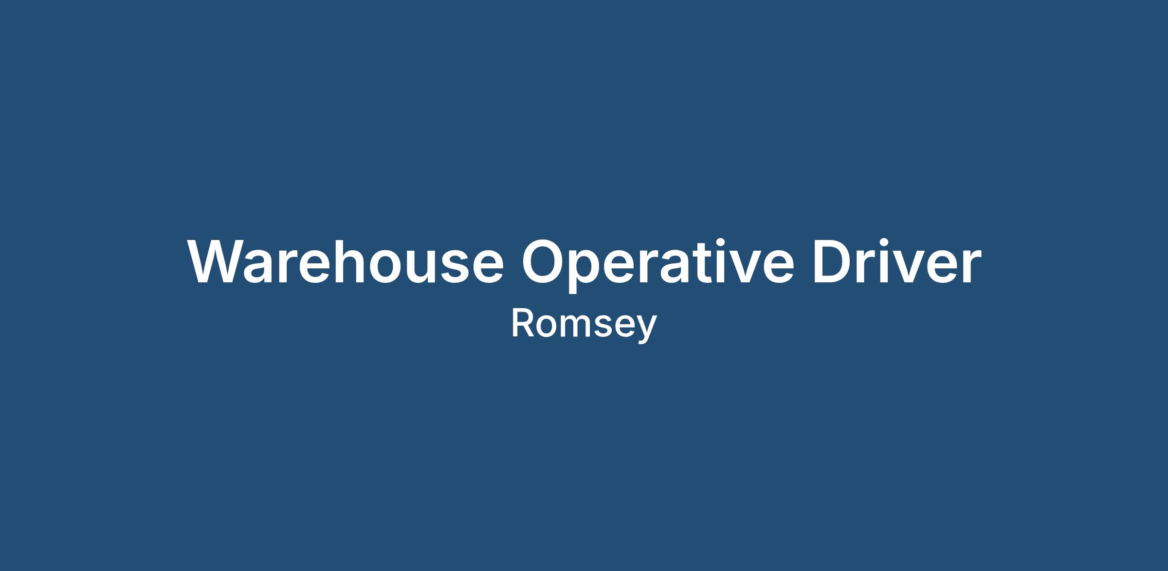 Due to ambitious growth and expansion, an exciting opportunity has become available for a Warehouse Operative/Van Driver to join a well-established and dynamic business based in the heart of Romsey. As a Warehouse Operative/Van Driver you will work in clean stores environment, where various supplies are stocked.