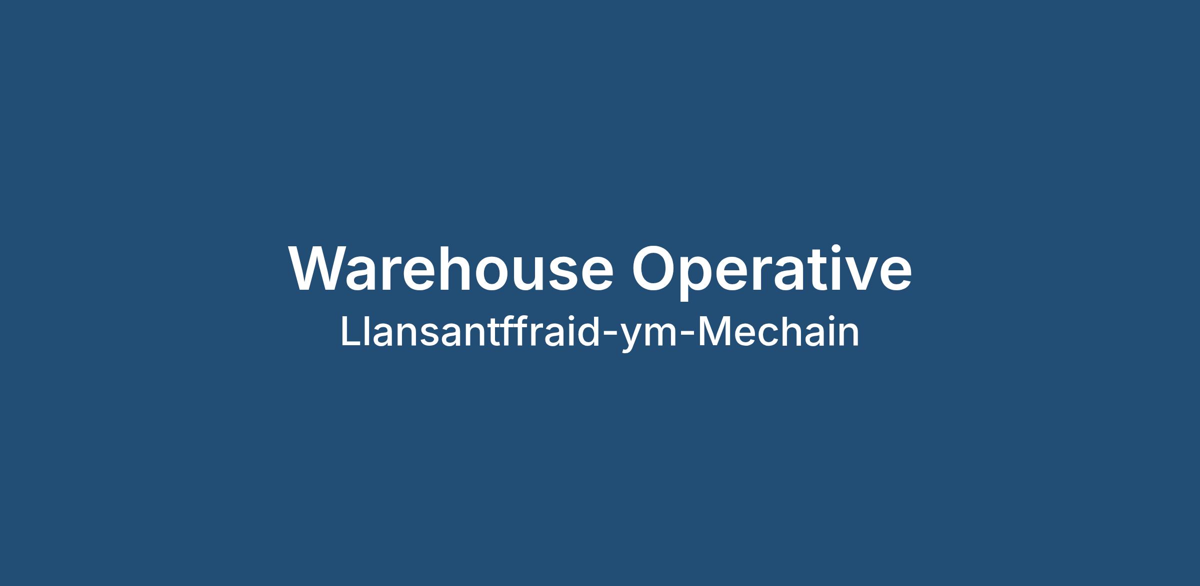 Wynnstay Group is seeking a motivated and experienced Agricultural Warehouse Assistant at our busy Llansantffraid Depot, ensuring efficient operations and exceptional service for our valued farmer customers.