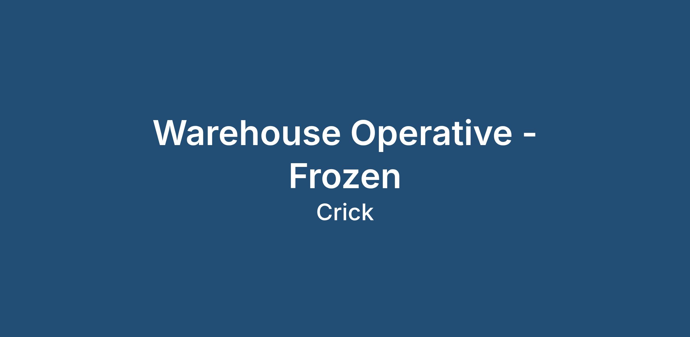 - Full PPE is provided for this role as the Warehouse operates at -25°C