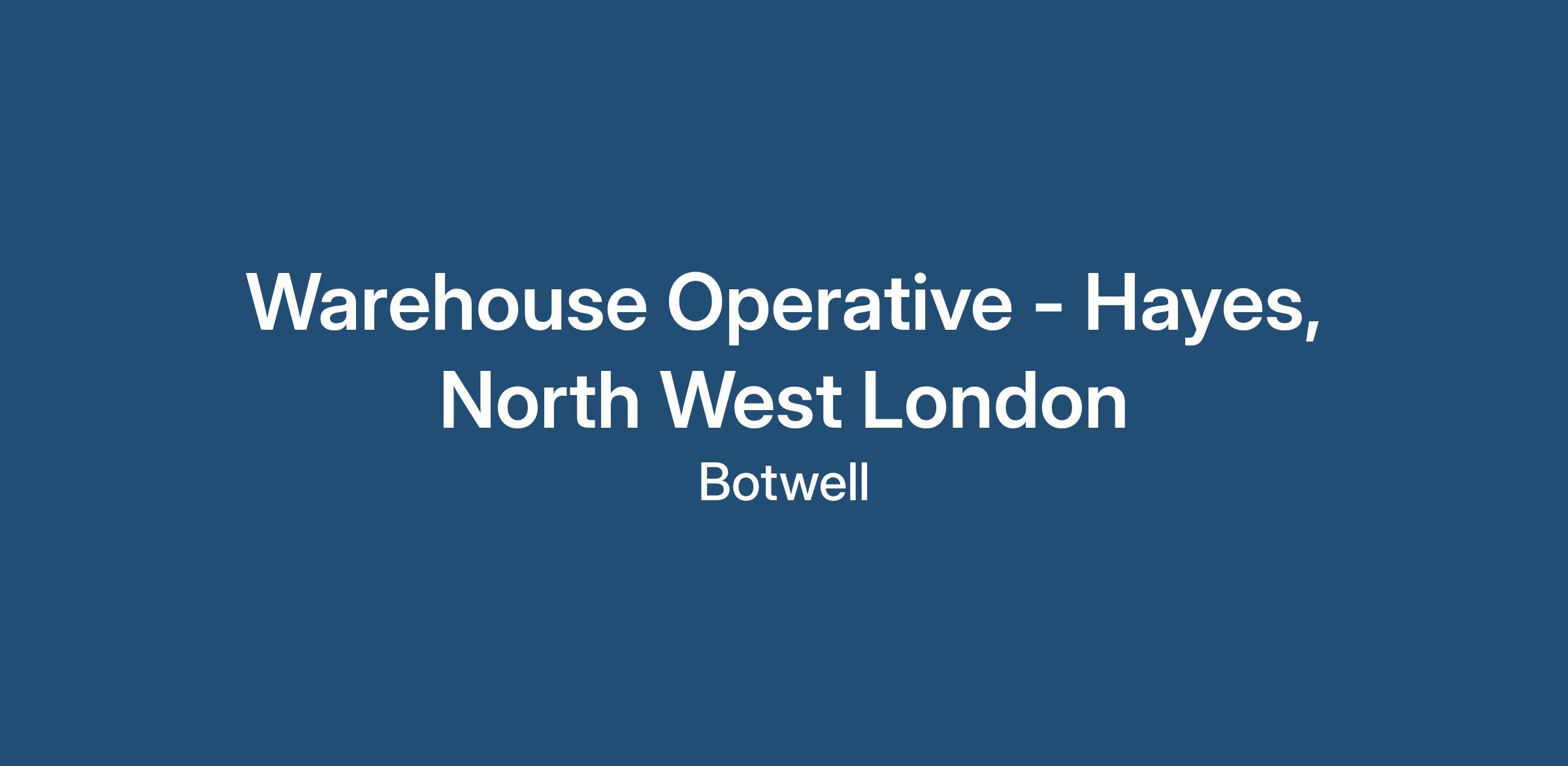 Warehouse Operative - £12.26 per hour - Immediate Start - Hayes, West London