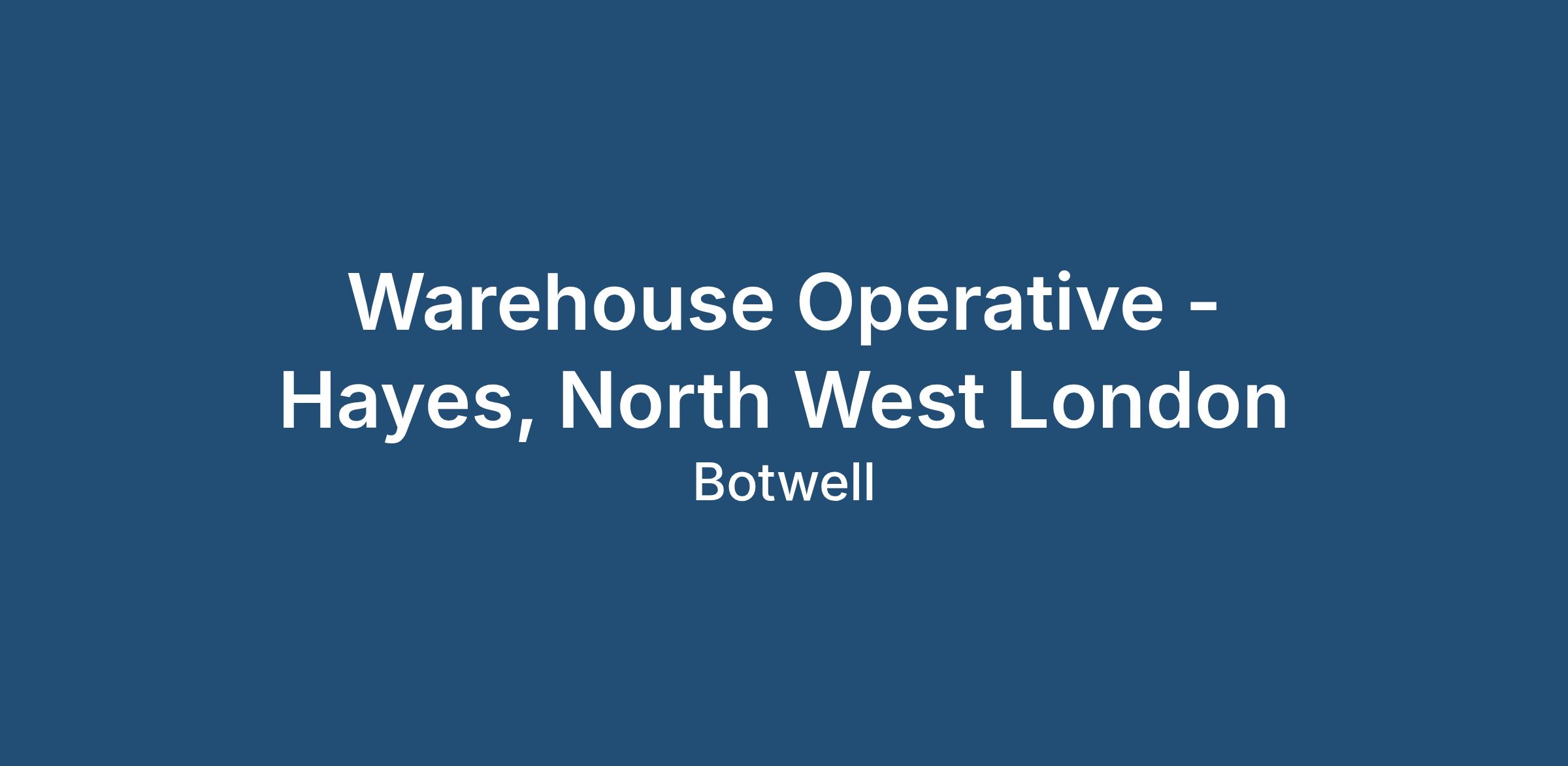 Warehouse Operative - £12.26 per hour - Immediate Start - Hayes, West London