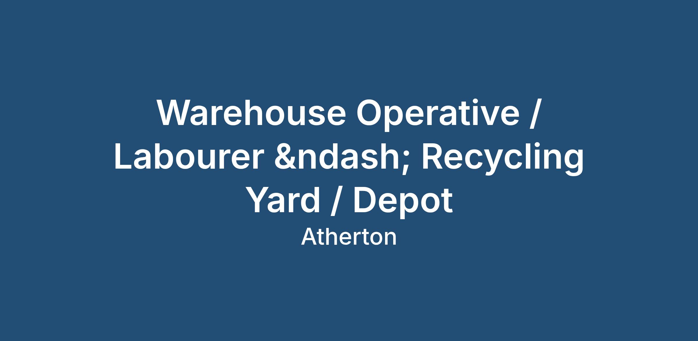 TITLE: Warehouse Operative / Labourer – Recycling Yard / Depot