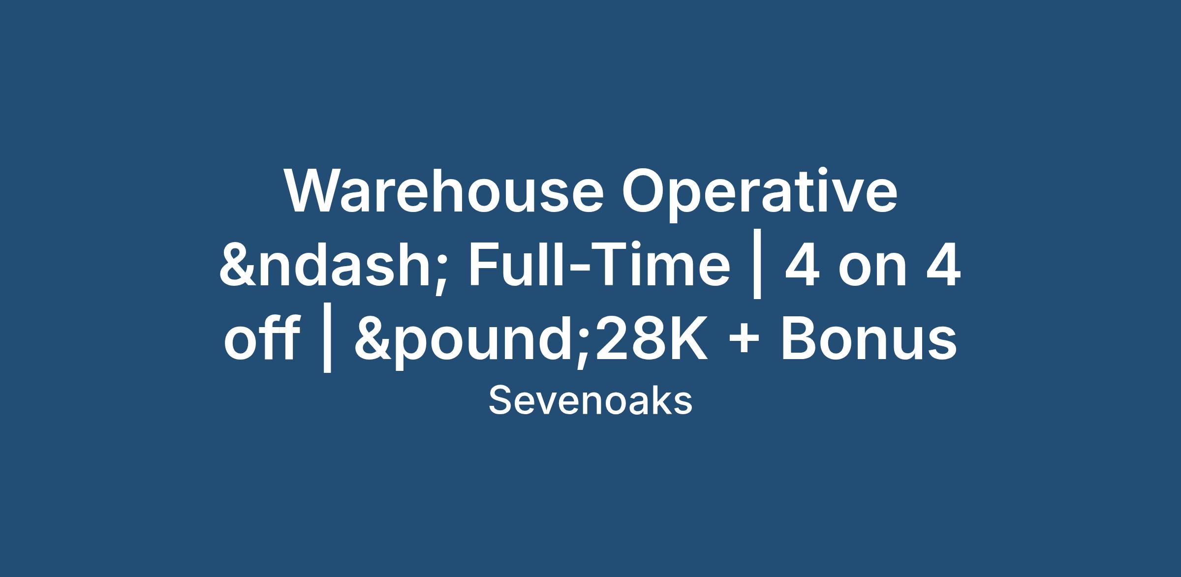 Warehouse Operative – Full-Time | 4 on 4 off | £28K + Bonus