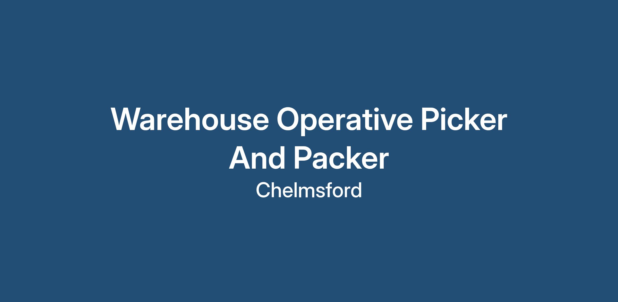 Warehouse Operative - Chelmsford - Up to £30,000 per annum - Permanent, Full Time