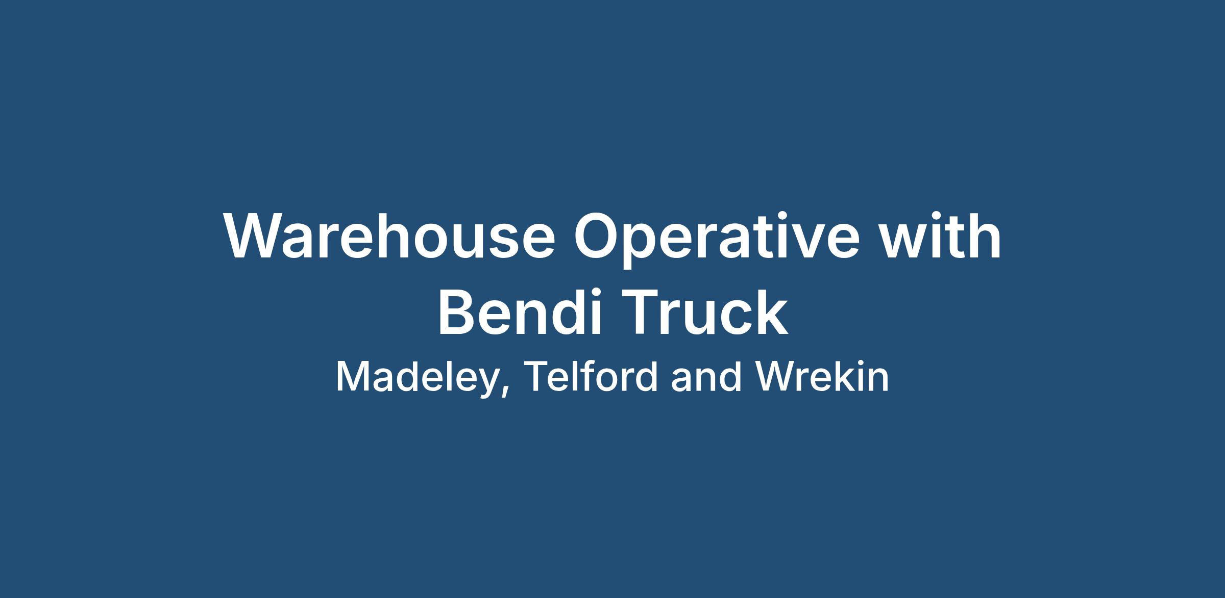 Applicants will hold a Bendi Truck Licence. Previous experience working within a similar role is preferred.