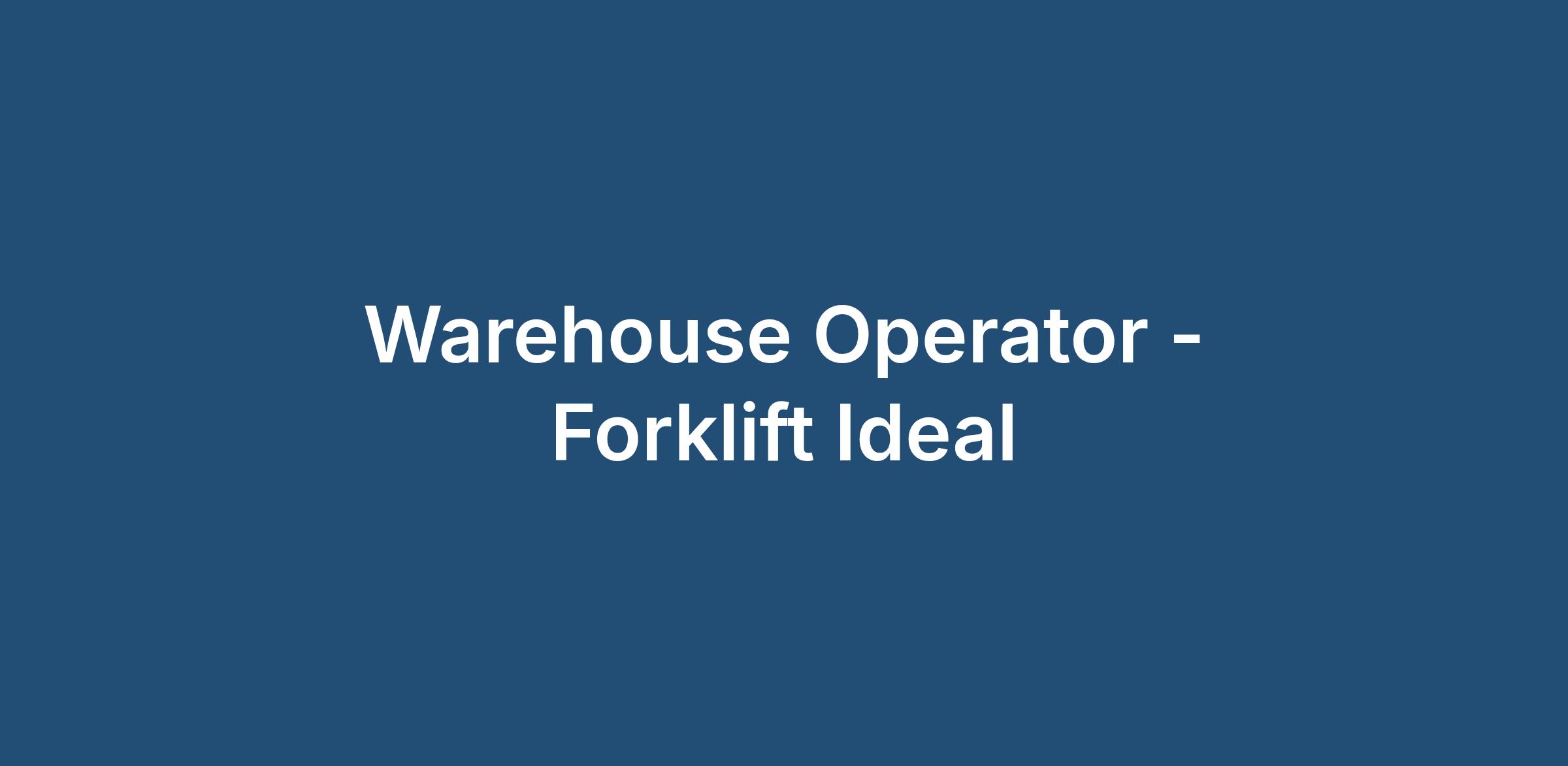 Warehouse Operator - Forklift Ideal