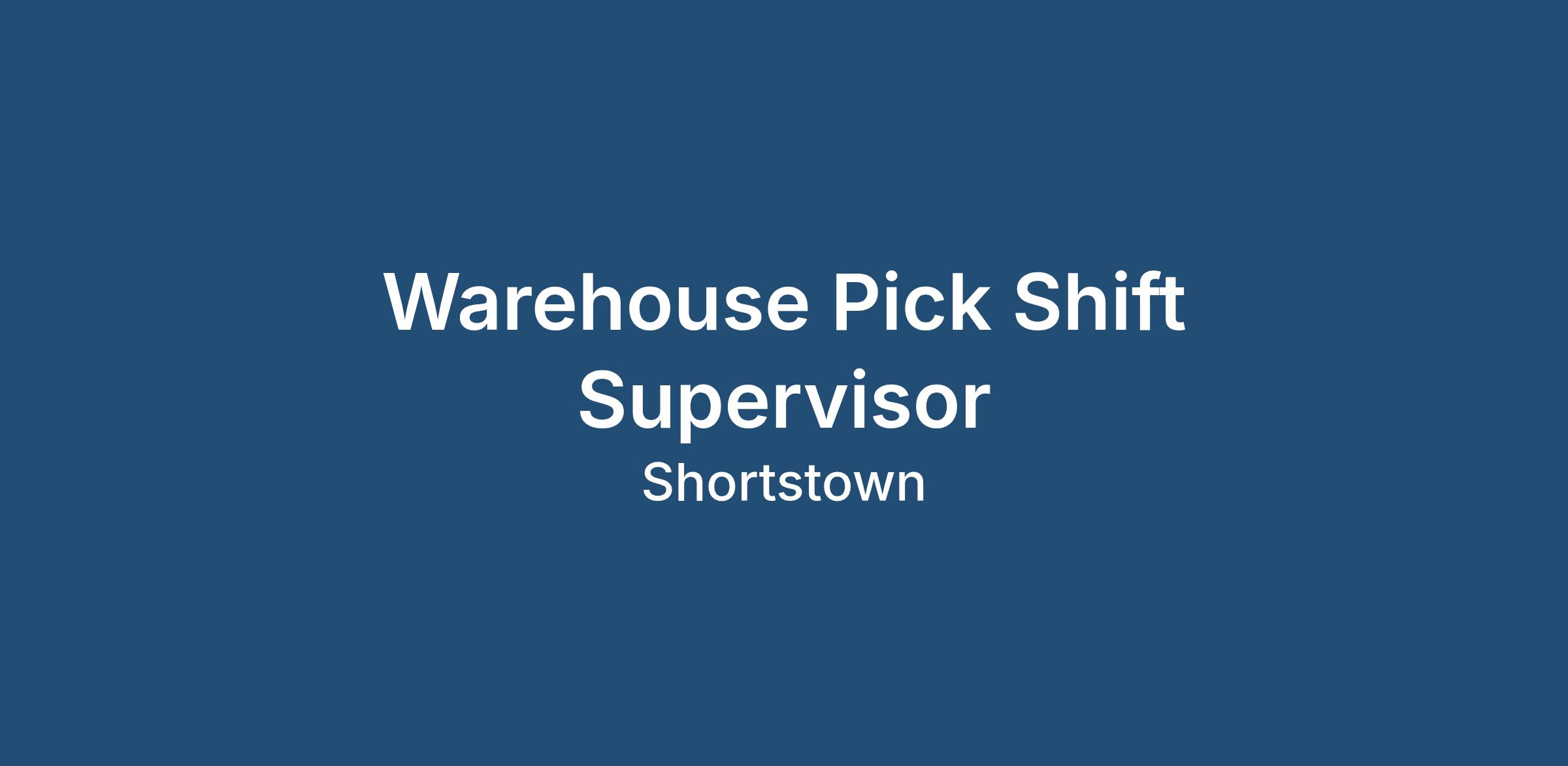As the Pick Shift Supervisor, you will report to the onsite Shift Manager.