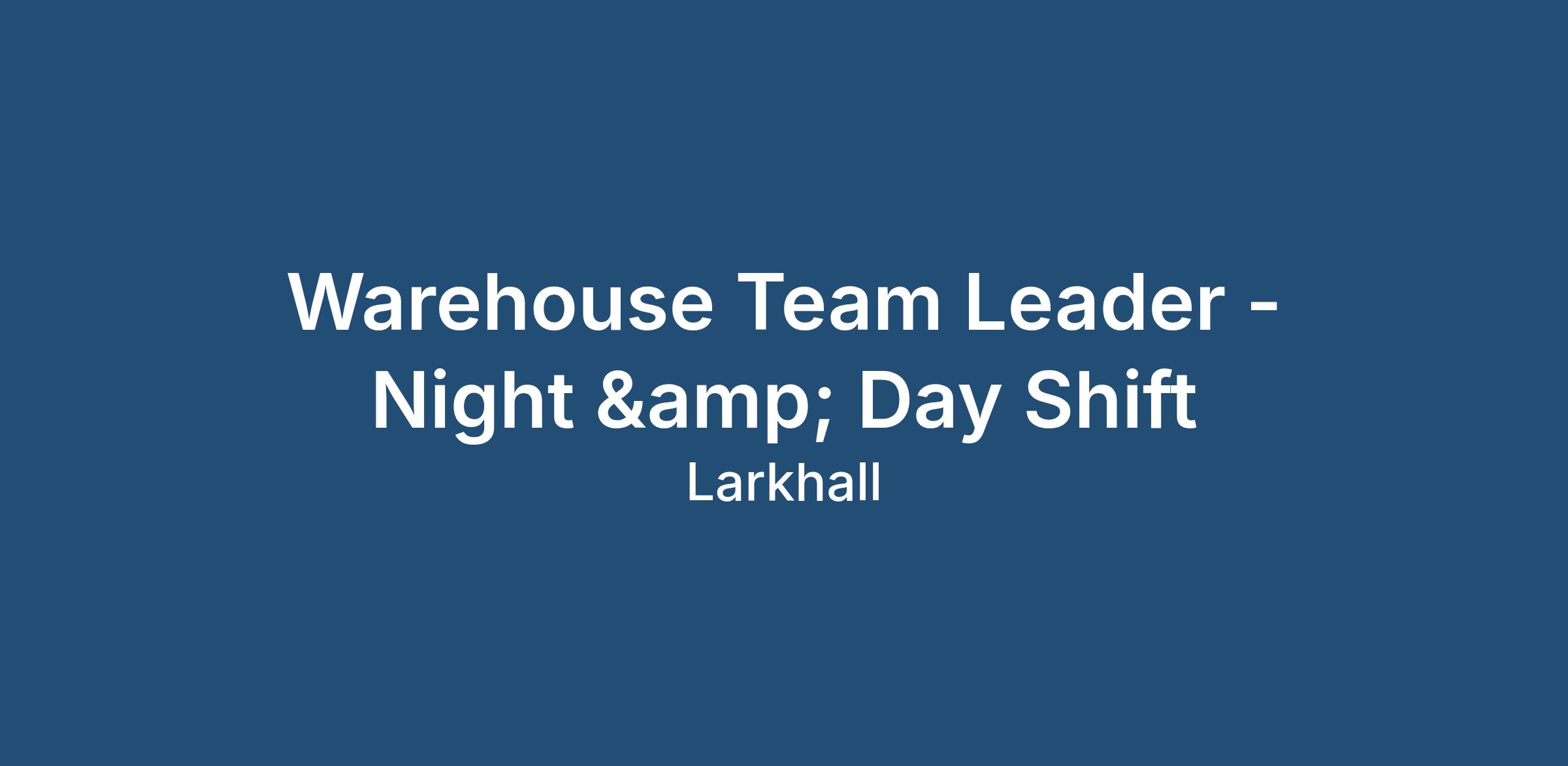 Warehouse Team Leader - Night & Day Shift