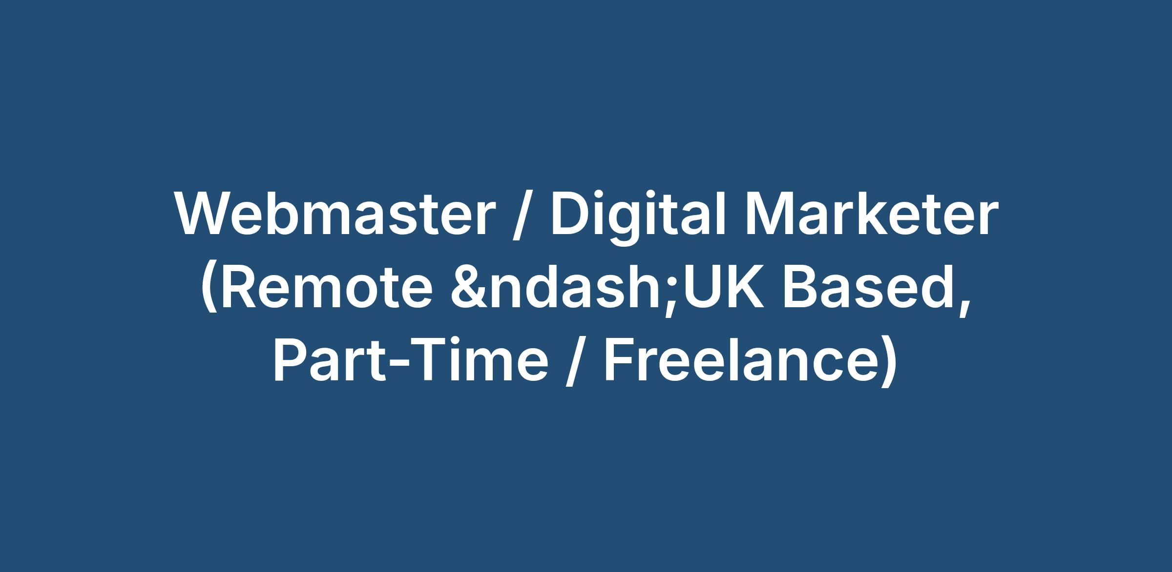 Webmaster / Digital Marketer (Remote – UK Based, Part-Time / Freelance)