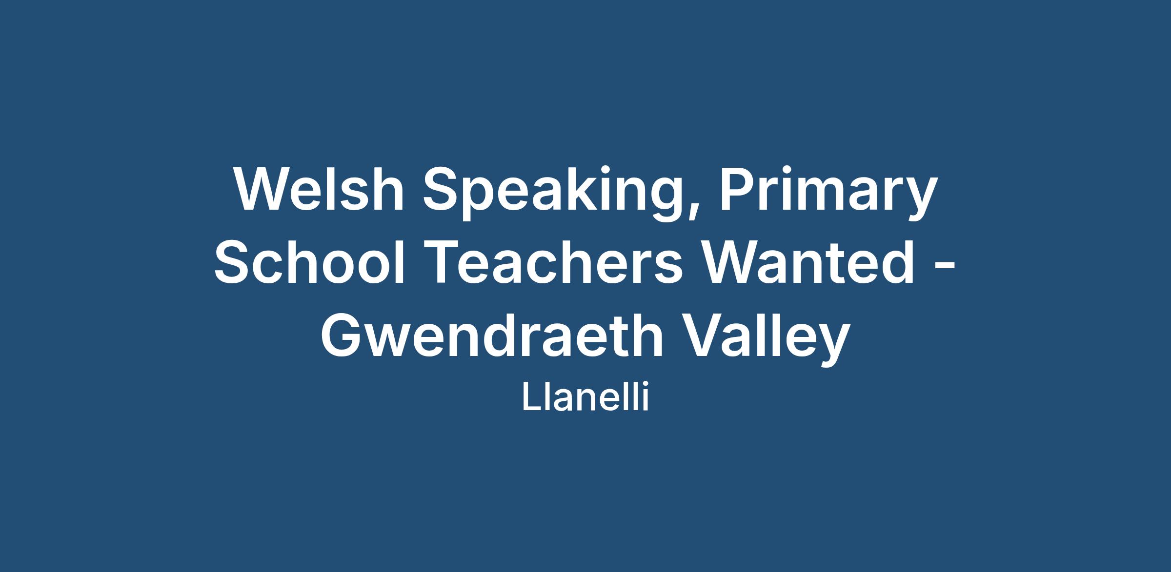 Welsh Speaking, Primary School Teachers Wanted - Gwendraeth Valley