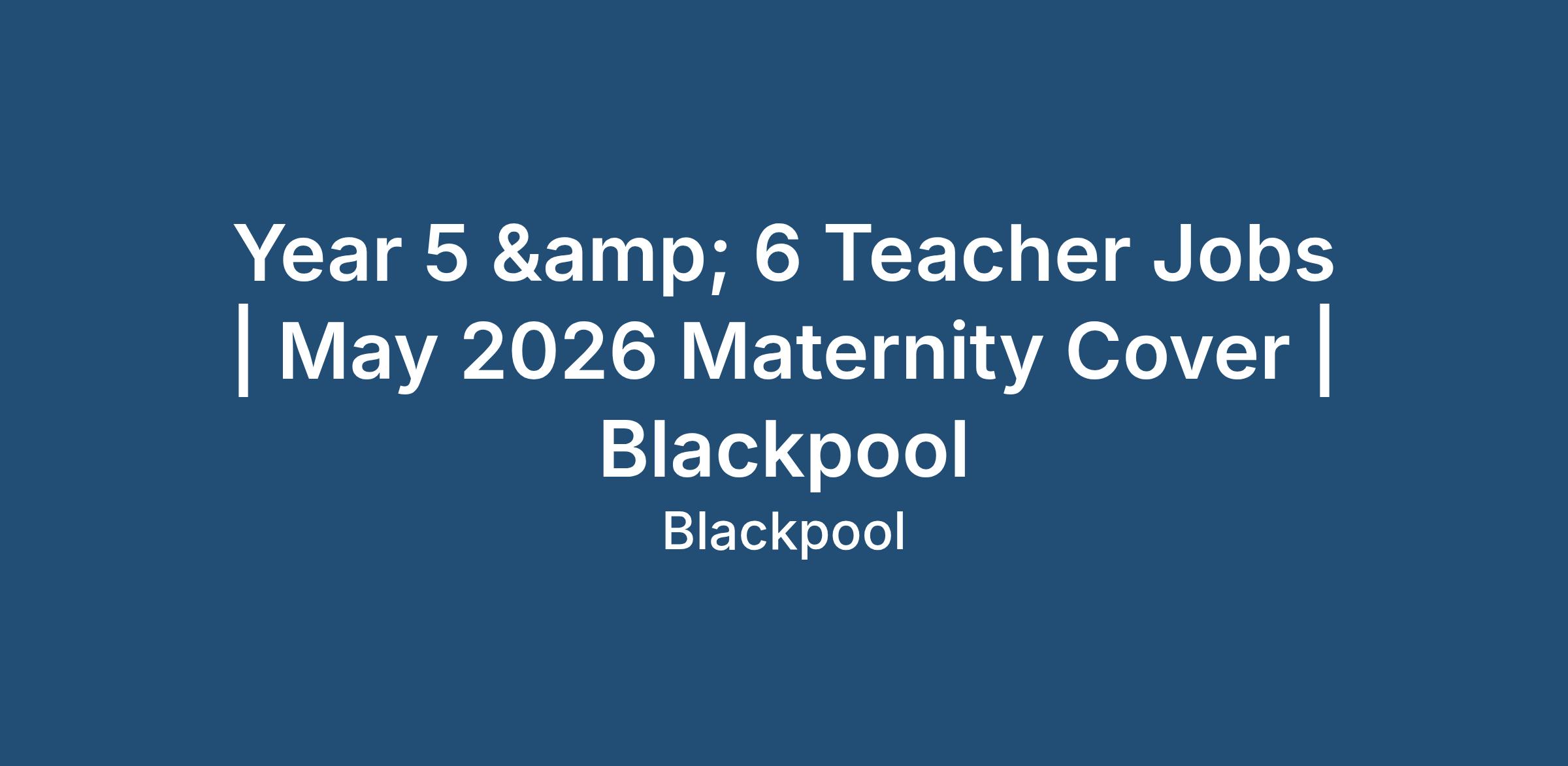 Year 5 & 6 Teacher Jobs | May 2026 Maternity Cover | Blackpool